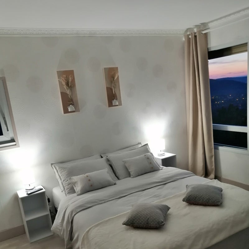 Venez découvrir le charme de cette jolie chambre perchée sur les hauteurs de la maison , vous disposerez d'un espace nuit de 15m2 avec vue sur la vallée , d'un superbe patio de 6m2 donnant sur la terrasse , ou vous pourrez vous détendre tout en dégustant votre cocktail